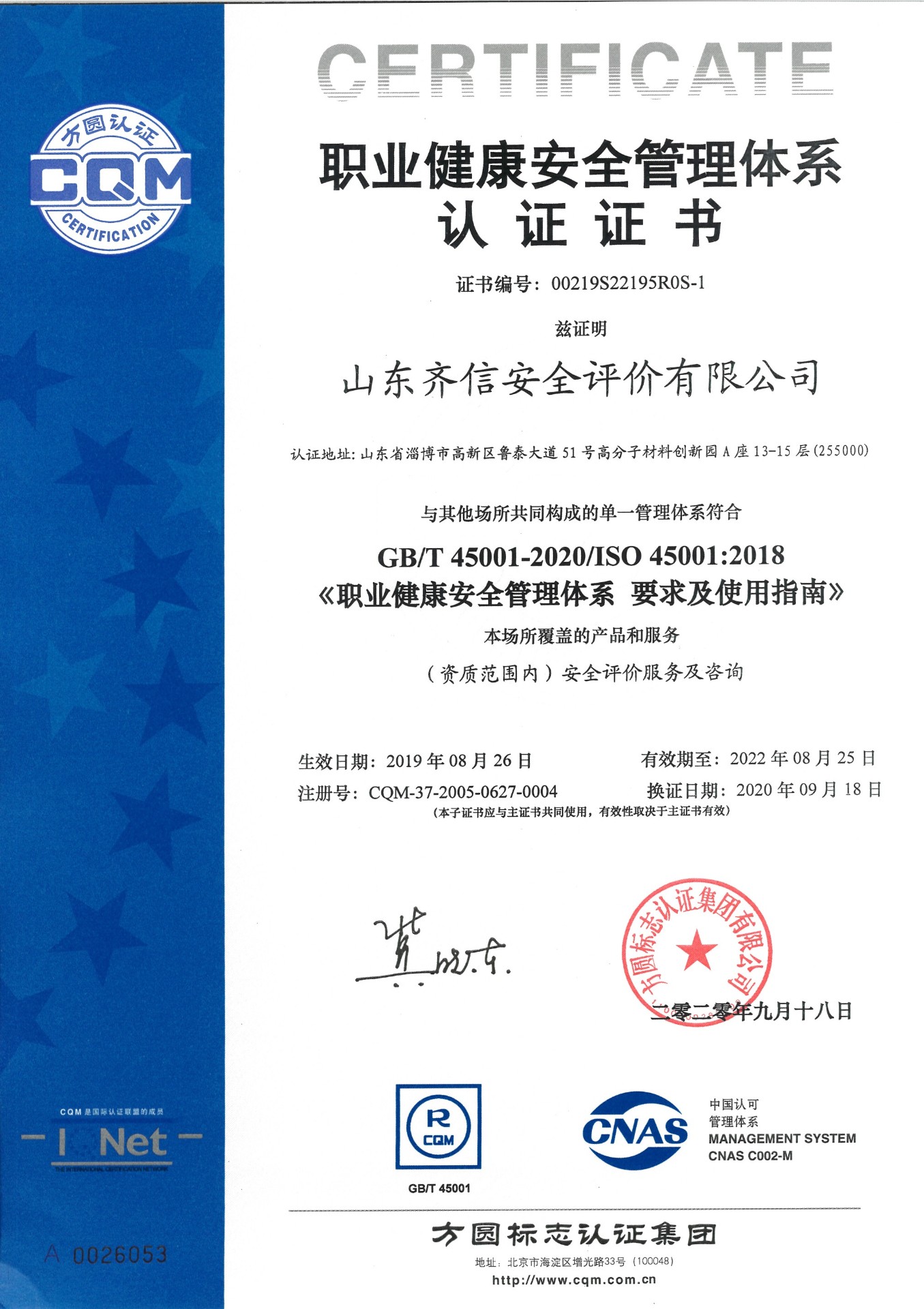 山東齊信安全評價有限公司成立于2005年3月,注冊資本300萬元人民幣,固定資產總值804.8728萬元。法定代表人徐光明,注冊地址及辦公地址位于淄博高新區魯泰大道51號高分子材料創新園A座13-15樓。2005年9月取得安全評價機構乙級資質。自國家應急部1號令實施以來,公司于2020年1月15日取得新安全評價資質,業務范圍包括:陸上油氣管道運輸業;石油加工業,化學原料、化學品及醫藥制造業;金屬冶煉。2018年12月21日取得安全生產標準化二級評審單位,評審范圍:危險化學品、紡織、建材、輕工、冶金、機械。              公司現有人員41人,其中專職安全評價師37人,注冊安全工程師26人,研究員1人、碩士5人、雙學士1人,山東省安全專家庫專家1人、教授級高工1人,高級工程師8人、工程師22人,專職危險化學品標準化評審員、工商貿標準化評審員30人,本科以上學